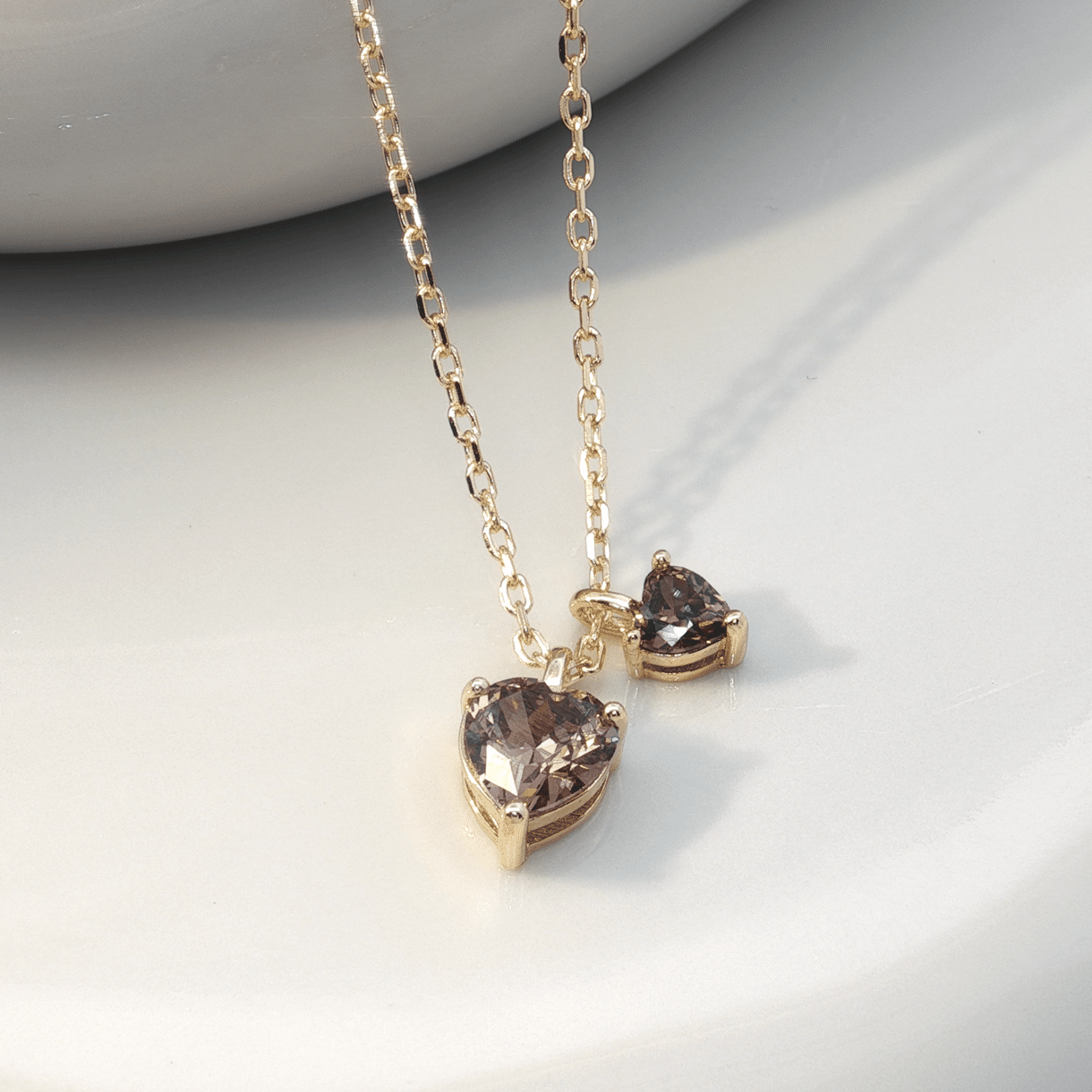 Aqua Dulce Eira Hearts halskæde i forgyldt sølv er en sød og feminin halskæde med to hjertevedhæng i forskellige størrelser. Det enkle design gør den perfekt til både hverdag og fest, og den justerbare længde gør det nemt at få den rette pasform.