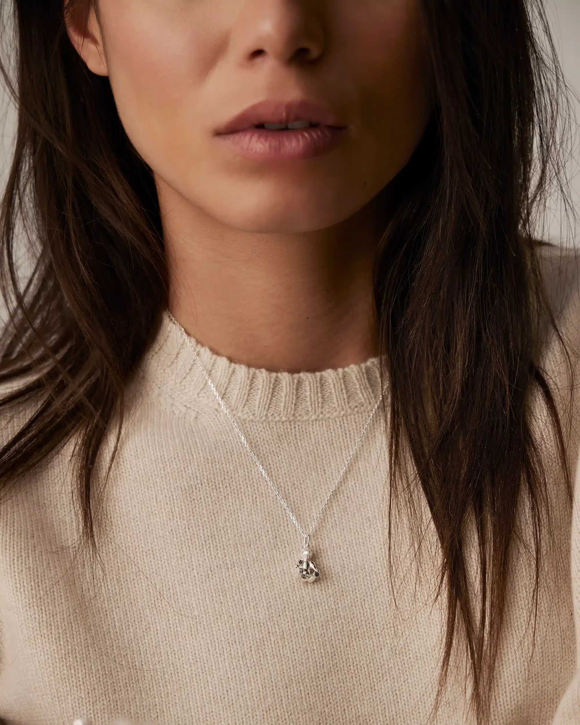 Kay Bojesen Bjørn halskæde er et personligt og tidløst smykke med et kærligt nik til Bojesens ikoniske designunivers. Den lille bjørn er formgivet i 925 sterlingsølv, med bløde linjer og et udtryk, der emmer af ro, venlighed og nostalgi.